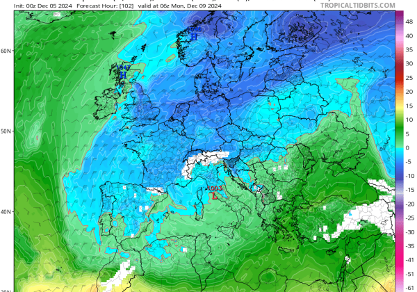 Les températures commencent à baisser. Par ailleurs, la neige s'est invitée sur l'ensemble de nos reliefs, dans des quantités modestes. Le flux bascule progressivement à l'Est. Ainsi, il va falloir surveiller une possible dégradation...