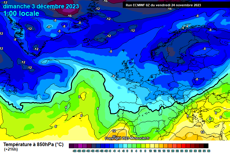 Une coulée froide va concerner l'Europe ce week-end, avec un axe principalement situé entre la Scandinavie, l'Allemagne, l'Autriche et les Balkans. La France est frôlée, mais de l'air modérément froid et continental va tout de même parvenir à déborder sur notre pays. En bref, une nouvelle baisse des températures est attendue, d'une intensité tout à fait ordinaire. Cette coulée dépressionnaire va tournoyer sur elle-même en début de semaine prochaine et devrait se rabattre temporairement vers la France (surtout le nord et l'est) du pays avec une nouvelle advection d'air continental. En bref, c'est un schéma qui n'est franchement hivernal (pas de sévérité du froid) mais suffisant à nous emmener vers des températures passant sous les normales saisonnières.