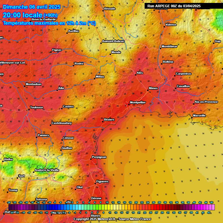 Les températures maximales partent à la hausse avec fréquemment autour de 22/23°C sur nos plaines, notamment dans l'intérieur des terres. Dimanche, le soleil continue de briller. Retour du mistral et de la tramontane en cours de journée, favorisant un effet de "foehn". Les températures augmentent encore d'un cran avec souvent 25 à 26°C sur nos plaines, sauf près du Rhône où le mistral favorise des maximales proches de 22°C.
