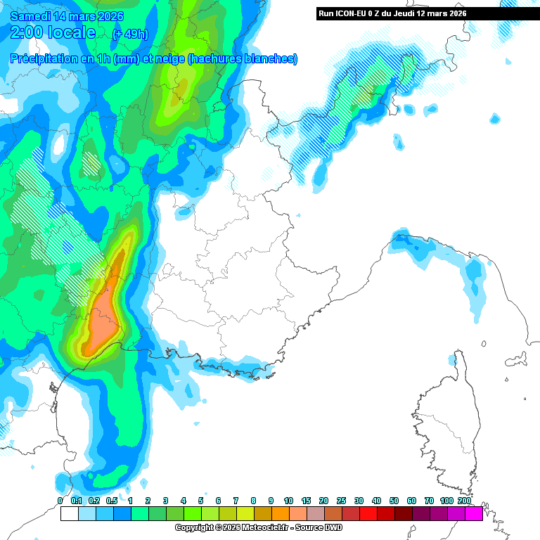 Durant le passage perturbé, les flocons tombent autour de 1000 m sur l'Aveyron et la Lozère, très temporairement un peu moins d'ici samedi matin mais avec de très faibles quantités précipitantes sur la fin de perturbation. Les sols blanchissent sur Levezou, Aubrac, Margeride, Causses, Aigoual et Mont-Lozère, Tanargue et Mezenc également. Une couche de 5/10 cm est possible à 1200/1300 m, peut-être 10/15 cm sur les plus hauts sommets. Sur nos plaines, les cumuls pluvieux sont modestes : quelques millimètres du Roussillon à l'Ouest Hérault tout au plus (arrière-pays privilégié, moins en bord de mer) et jusqu'à 10/20 mm sur les plaines du Gard, localement un peu plus côté vallée du Rhône.