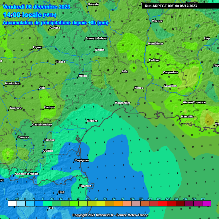 Le Roussillon le voit arriver gros comme une maison. Oui c'est encore le département des Pyrénées-Orientales qui sera le moins exposé aux pluies avec des cumuls de 2 à 5 mm sur les plaines. L'Aude pourra espérer 4 à 8 mm, plutôt 10 à 15 mm à l'Ouest de Carcassonne. Pour l'Hérault, nous pouvons espérer 5 à 10 mm sur la moitié Ouest, 10 à 20 mm en se rapprochant du Gard. Enfin, sur le Gard et la Lozère, les cumuls pourront atteindre 20 à 30 mm, localement plus.