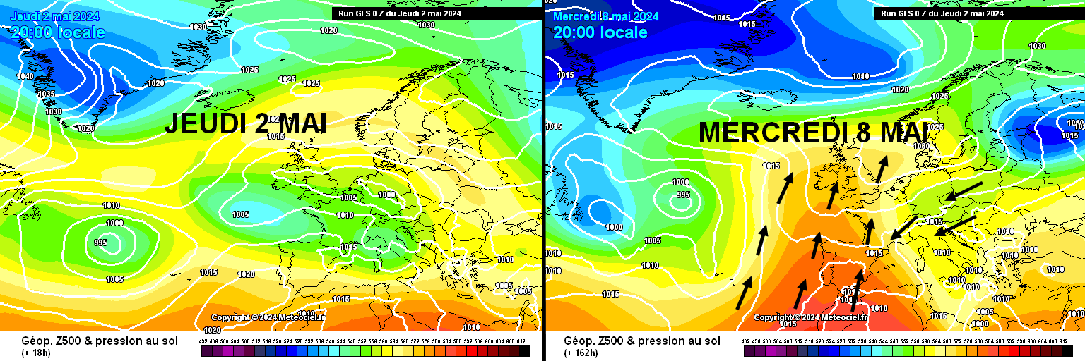 Nous espérons le retour TEMPORAIRE des hautes pressions entre le milieu de semaine prochaine et le week-end suivant. Cela va dans le sens d'une période calme de plusieurs jours avec des températures plus chaudes. Toutefois, les modèles saisonniers sont sans appel et semblent confirmer une période potentiellement très humide entre la mi-mai et le 22/23 mai. A confirmer d'ici là car l'échéance est lointaine.