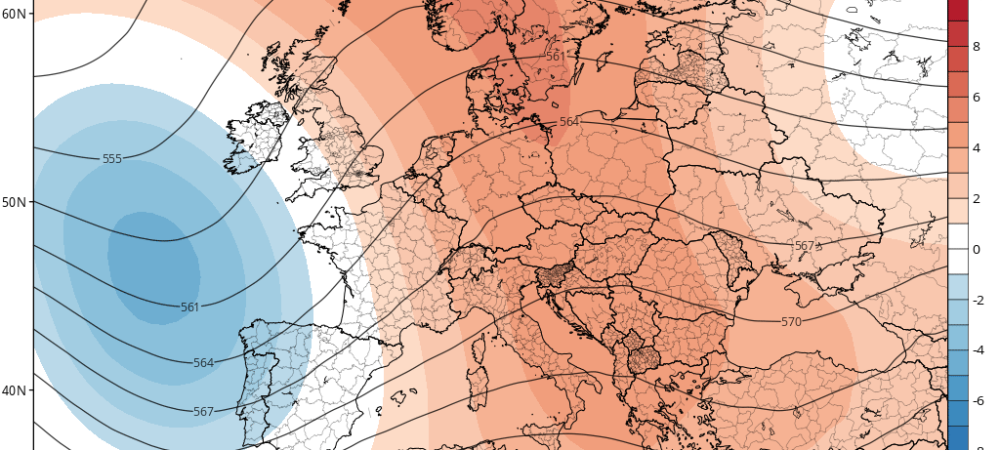 Nous sommes en cette fin de semaine sous l'influence d'un complexe dépressionnaire en nette perte de dynamisme, qui s'étire de l'Atlantique à la France. Durant le week-end, cette dépression moribonde va remonter progressivement vers le nord, en direction de l'Angleterre. L'anticyclone est loin au sud, en direction de l'Afrique. Pour la semaine prochaine, nous misons sur un retour progressif des hauts géopotentiels/des hautes pressions.