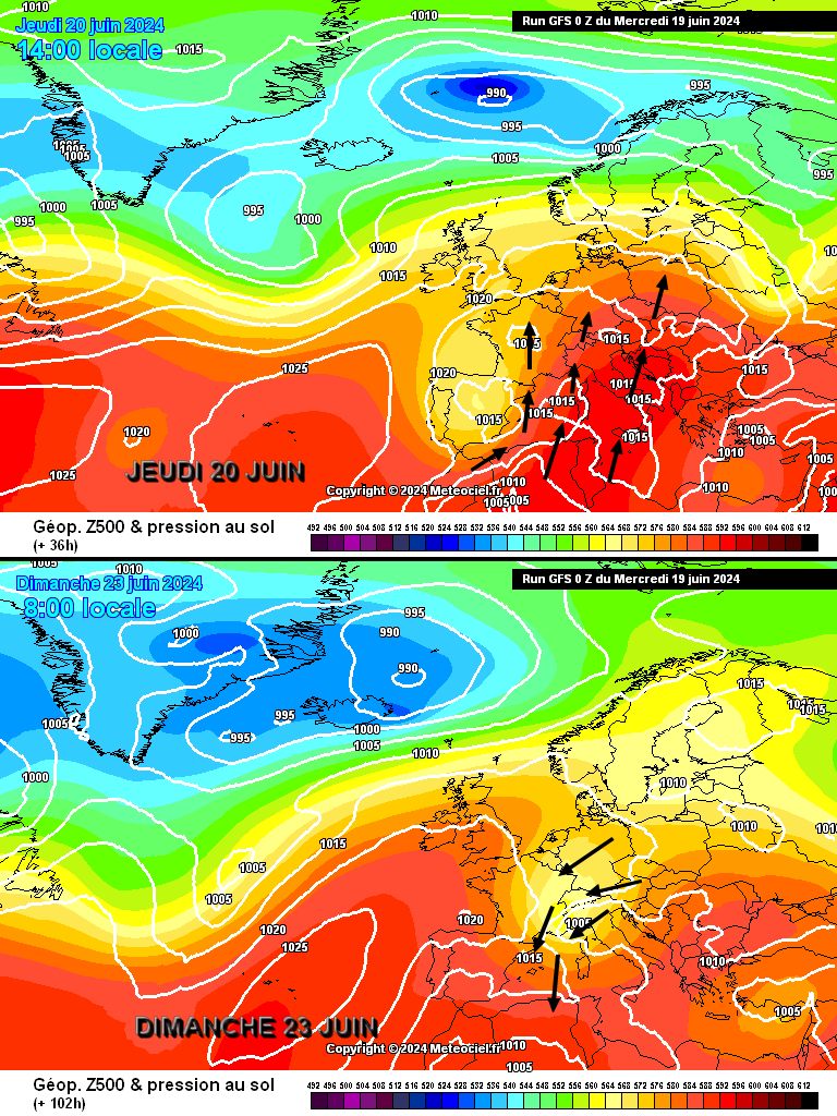 L'anomalie dépressionnaire s'évacue vendredi vers le Nord-Est de la France. Une nouvelle goutte froide va glisser entre l'Angleterre et les Alpes ce week-end. Si elle va engendrer une baisse temporaire des températures (oui, la chaleur est à nouveau repoussée !) nous devrions toutefois rester en marge de l'activité précipitante. La suite ? Le modèle GFS reste bien "maussade" (étonnamment d'ailleurs vu les précédentes tendances qui étaient modélisées) alors que CEP est en faveur d'un temps de plus en plus anticyclonique et très chaud. En bref, ce n'est pas encore calé de ce côté-là.