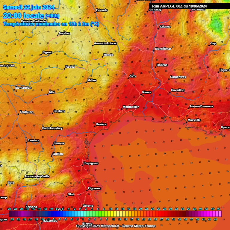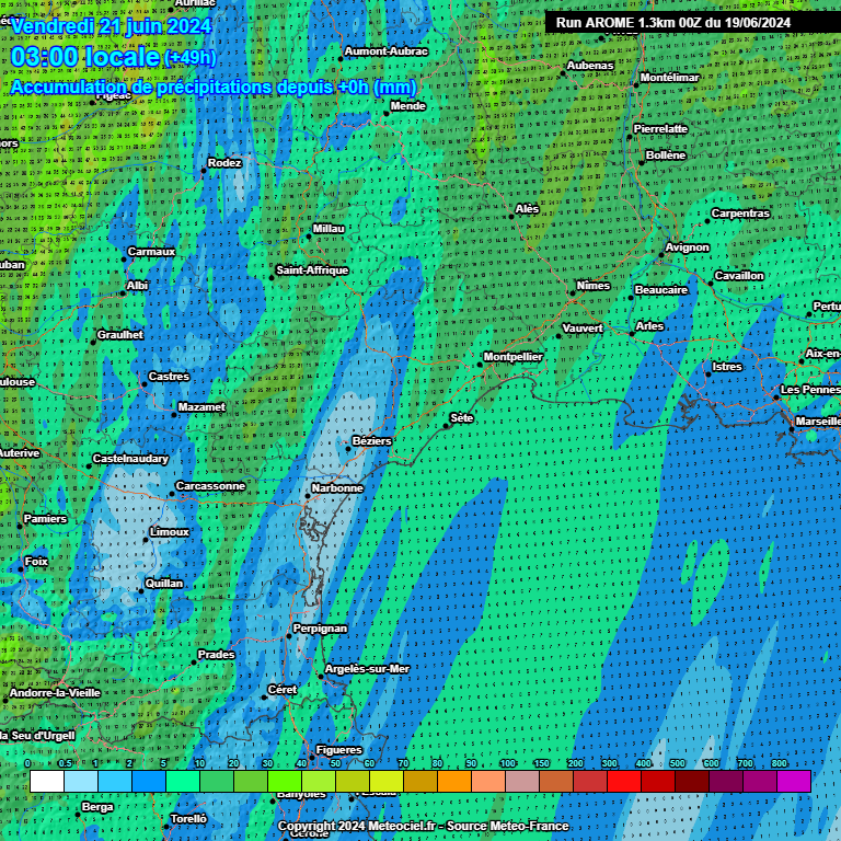 L'activité pluvieuse semble se calmer l'après-midi du Roussillon à l'Ouest Languedoc, mais on peut avoir encore de bonnes averses sur le nord de l'Hérault, du Gard ainsi que des Cévennes à la Lozère. Elles conservent parfois un caractère orageux. Un nouveau rail pluvieux pourrait toucher le Gard la nuit suivante, bien que cela soit plus incertain. Les cumuls prévus ces prochaines 24h sont hétérogènes mais on peut avoir 2 à 5 mm sur les plaines Aude/PO/Ouest Hérault (quelques poches localement plus sèches). Il peut y avoir 10/20 mm en remontant près de l'Espinouse. Sur l'Est de l'Hérault, il peut tomber souvent 5/10 mm et localement jusqu'à 15 mm. Sur le Gard, les cumuls sont plus conséquents avec souvent 10 à 20 mm et localement 25 mm notamment sur le nord du département. Même topo sur l'Est de la Lozère.