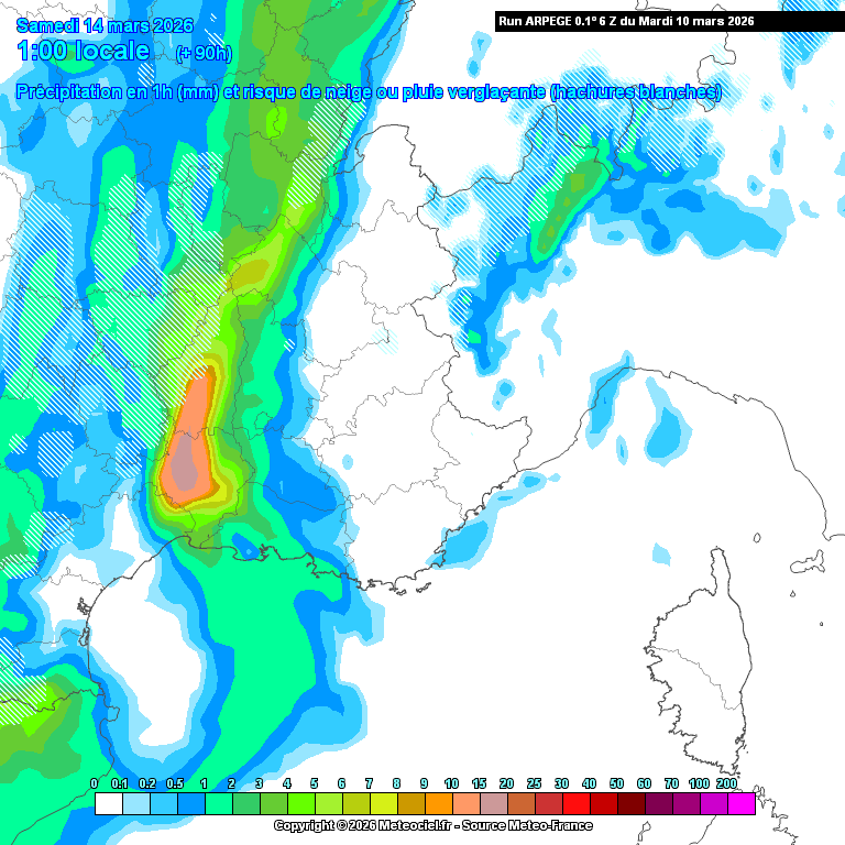 Les pluies devraient traverser toute la région. Elles pourront être temporairement modérées sur le Gard mais cela restera plutôt banal dans l'ensemble. Le fait marquant c'est donc l'arrivée d'air plus frais ou froid à l'arrière. Ainsi, la neige fera son retour sur nos reliefs, notamment en Lozère. Il pourrait neiger jusqu'à relative basse altitude. La limite pluie-neige pourrait s'abaisser jusqu'à 700 ou 800 mètres. Cela dépend des scénarios encore et des doutes persistent sur cette limite.