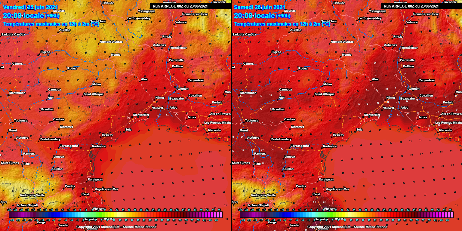 Pour vendredi, grand soleil du matin jusqu'au soir, avec juste quelques nuages élevés qui circulent en altitude. Des nuages bas plus nombreux vont par contre se maintenir le matin sur les reliefs ainsi que dans l'intérieur de l'Aude. Pour samedi, le soleil s'impose une nouvelle fois et nous confirmons une hausse des températures. Vendredi après-midi, nous aurons souvent 27 à 28°C sur le Roussillon et l'Aude, 28 à 30°C sur l'Hérault et 29 à 31°C sur le Gard. Samedi, nous gagnerons encore 1 ou 2°C avec jusqu'à 33°C dans le secteur de Nîmes.
