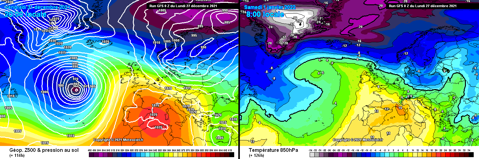 Cette semaine, l'anticyclone va envahir toute la France, associé à des hauts-géopotentiels. On retrouve un positionnement assez similaire à celui que l'on a habituellement... en période estivale. Cet anticyclone va être associé à une masse d'air exceptionnellement chaud en altitude, puisque des valeurs de +16°C sont prévues à 850 hPa sur le sud de la France (ce qui équivaut à une altitude d'environ 1400 m en atmosphère "libre"). Cette solide dorsale va se maintenir au moins jusqu'au 2 ou 3 janvier, entraînant des températures très élevées, aussi bien en plaine qu'en montagne.