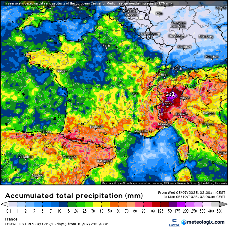 Il conviendra par conséquent d'attendre encore 24/48h pour parler plus précisément de ce risque orageux mais sachez que nous retenons une option instable et que cette instabilité devrait se maintenir une grande partie de la semaine prochaine. Ci-dessous, les précipitations du modèle CEP (via meteologix) entre ce week-end et la semaine prochaine :