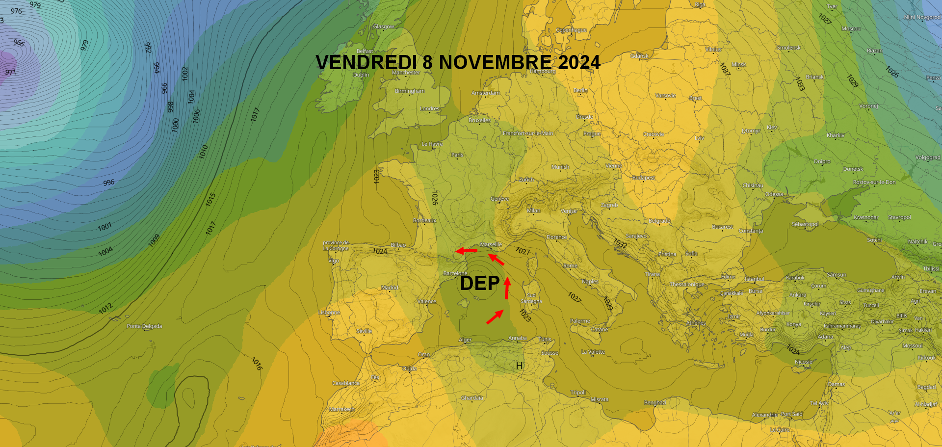 1) Analayse météorologique générale : un anticyclone légèrement affaibli par de petites anomalies autour de la Méditerranée