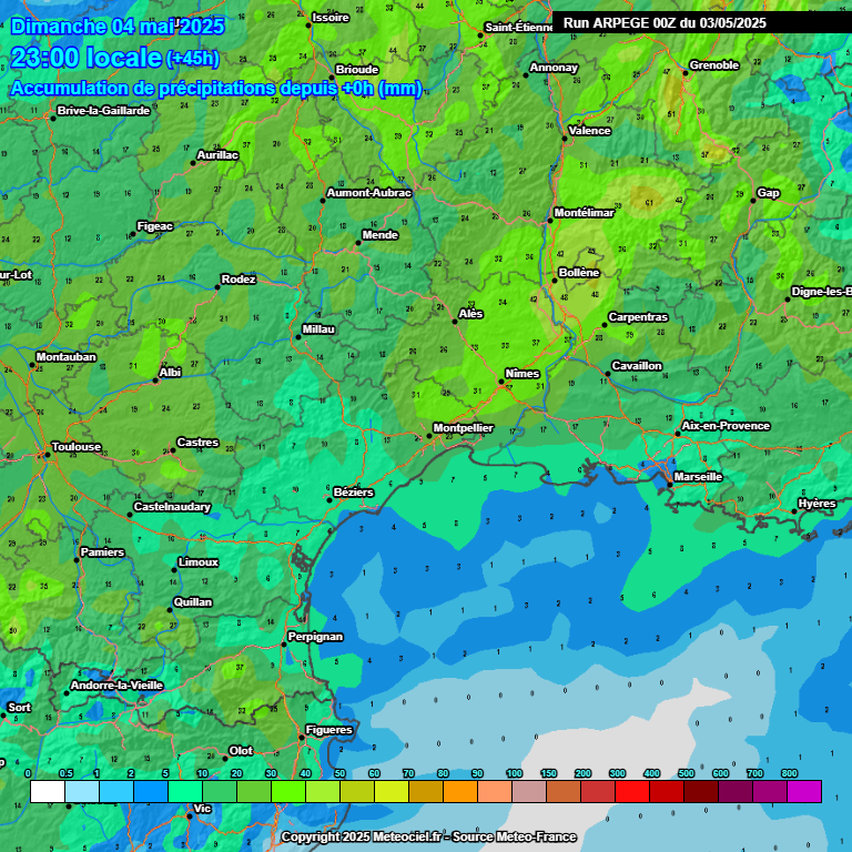 Ce samedi matin, des entrées maritimes se forment entre le Roussillon et l'Aude, mais de belles éclaircies circulent de l'Hérault à la Lozère en passant par le Gard (malgré un voile nuageux lié au sable en altitude). Cet après-midi, les nuages sont de plus en plus nombreux. Ils peuvent donner une averse localisée, puis la probabilité augmente d'un cran la nuit prochaine surtout entre l'Est de l'Hérault, le Gard et la Lozère. Un bref caractère orageux n'est déjà pas à écarter bien que l'activité soit très localisée et le plus souvent insignifiante. Dimanche en matinée, les nuages dominent mais le temps demeure assez calme avec éventuellement une averse très localisée.
