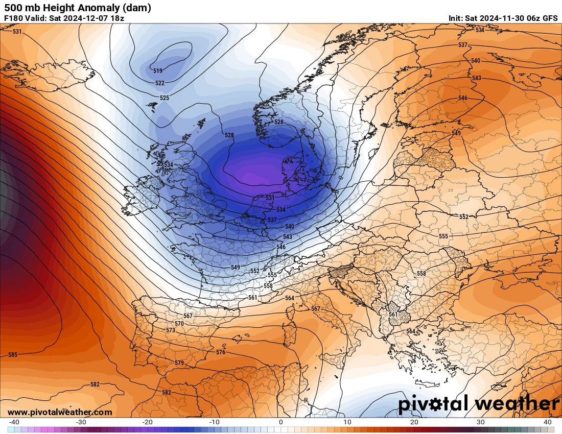 Si l'échéance est assez lointaine, la fiabilité n'est pas si mauvaise du fait d'une belle coïncidence des modèles. Plus concrètement, un blocage anticyclonique devrait se constituer sur l'Atlantique venant faire basculer le flux au Nord sur notre pays avec des basses pressions qui pourront facilement glisser depuis l'Europe du Nord. Ainsi, une très nette baisse des températures est envisageable.
