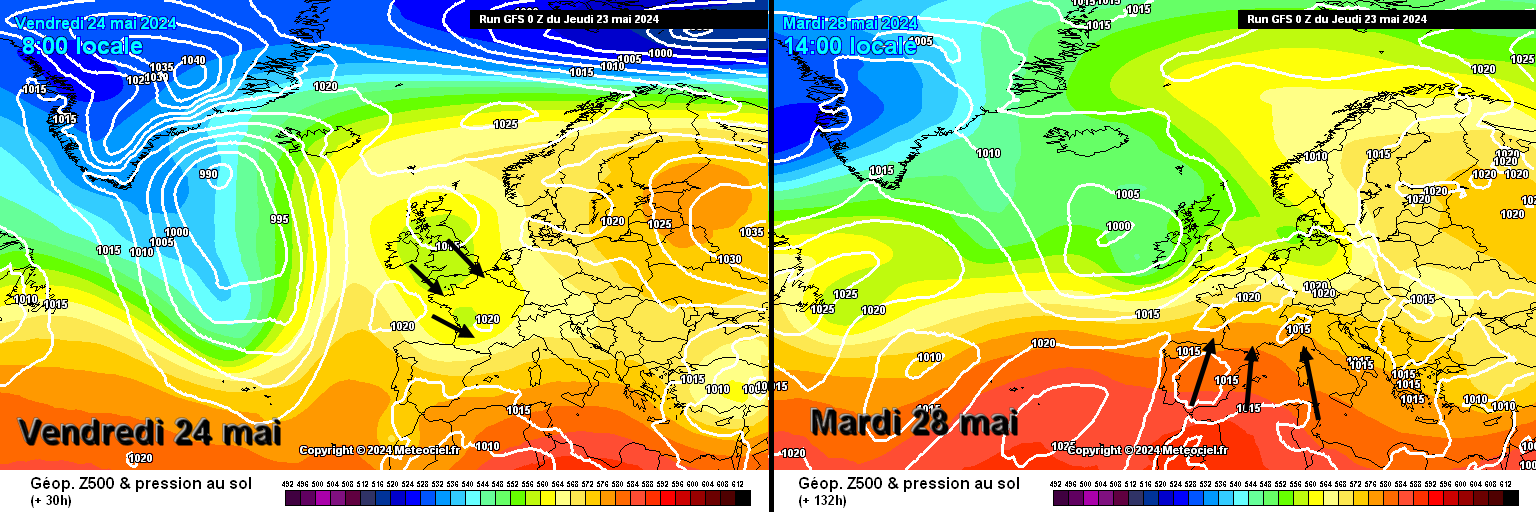 Situation fragile, car cet anticyclone ne va pas s'avérer très puissant. Cela va quand même favoriser une hausse nette des températures et l'on pourrait même se rapprocher des 30°C. Les orages vont peu à peu se raréfier. Il faut quand même s'attendre à quelques déclenchements localisés, plutôt près des reliefs. La semaine prochaine, la prévisibilité est médiocre : nos régions Méditerranéennes pourraient rester sous l'influence des hautes pressions, alors que les deux tiers nord de la France seront sous l'influence des bas-géopotentiels. Nous sommes "du bon côté" mais c'est très limite.