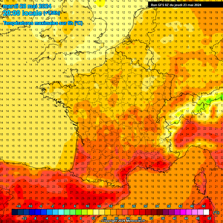 Samedi après-midi, les maximales vont atteindre 23 à 25°C sur nos plaines intérieures, loc. 26°C sur l'Hérault et le Gard. Dimanche, on va franchir un cap supplémentaire avec souvent 26 à 28°C. Ainsi, les températures vont repasser au-dessus des normales saisonnières. Ces petites chaleurs ordinaires pour une fin mai devraient se maintenir au moins quelques jours la semaine prochaine, avec des orages qui semblent se localiser plutôt aux reliefs.