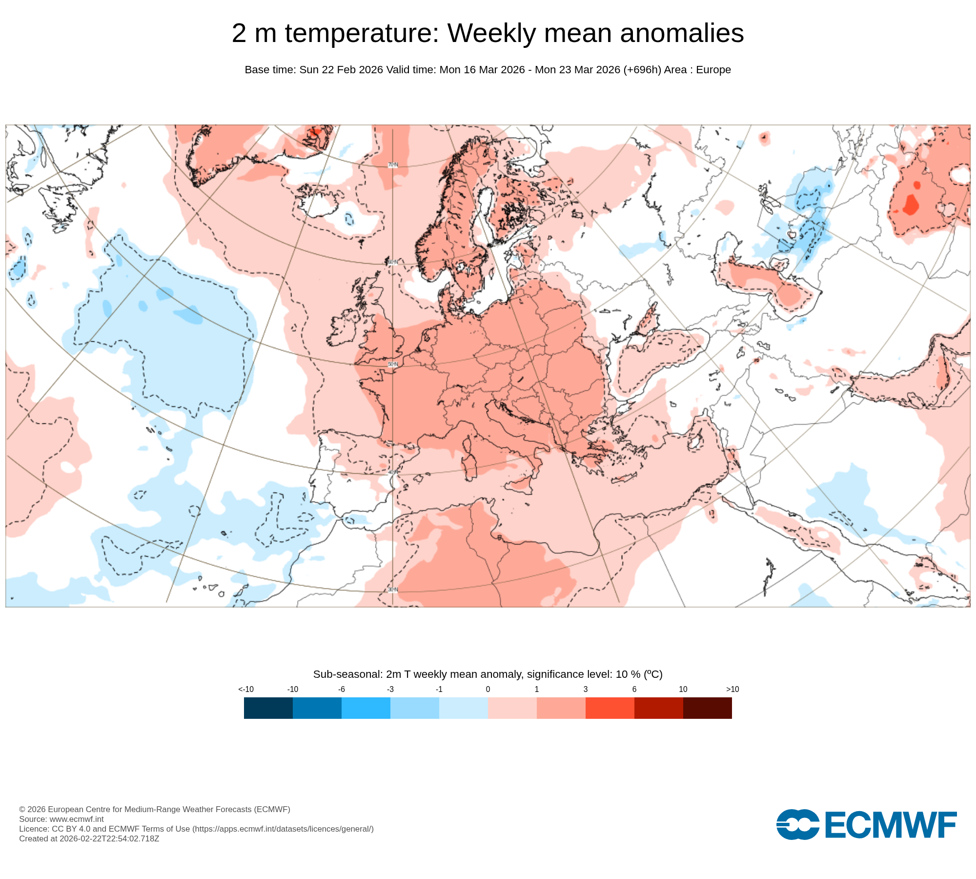 Qu'il s'agisse du modèle ECMWF (CEP, centre Européen) et/ou de CFS (modèle Américain) : les deux s'accordent vers une accentuation du cyclonisme dépressionnaire autour du 5 mars et pouvant perdurer jusqu'à la moitié du mois au moins. On surveillera d'ailleurs l'évolution de l'anticyclone qui va progressivement remonter vers de plus hautes latitudes. Cela veut dire concrètement qu'un temps plus nuageux et redevenant humide est probable (pluviométrie repassant au-dessus des normales). Ce qui est plus incertain, c'est d'anticiper les quantités de précipitations. Cela va dépendre de comment se positionnent les dépressions. Retenez un signal plus nuageux, plus humide et à peine moins doux.
