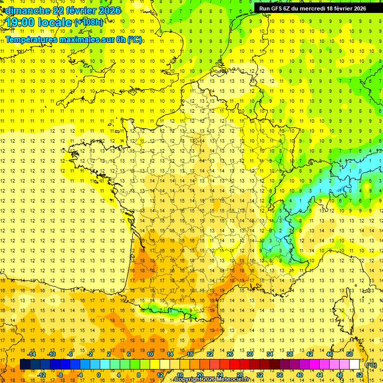 Les plaines intérieures de nos départements Méditerranéens quant à elles seront soumises à un mercure plus élevés avec globalement 18°C à 19°C sur de larges zones, voire ponctuellement 20°C sur les secteurs les plus à l'abri (Corbières, Biterrois, Lodévois et arrière-pays Montpelliérain, bassin Alésien, Gardonnenque et Costières).