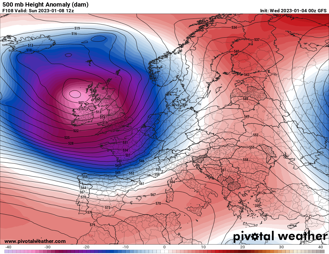 Actuellement, le contexte synoptique est caractérisé par un bloc anticyclonique qui s'étire du Maghreb jusqu'à l'Europe de l'Ouest, dont la France. Le flux de sud-ouest assez dynamique, assurant des températures +3 à +5°C au-dessus des moyennes saisonniers. D'ici le week-end à venir, l'activité dépressionnaire va se renforcer entre le Groenland, l'Islande, le Royaume-Unis et même le nord de la France. Une première ondulation dépressionnaire est attendue ce week-end :