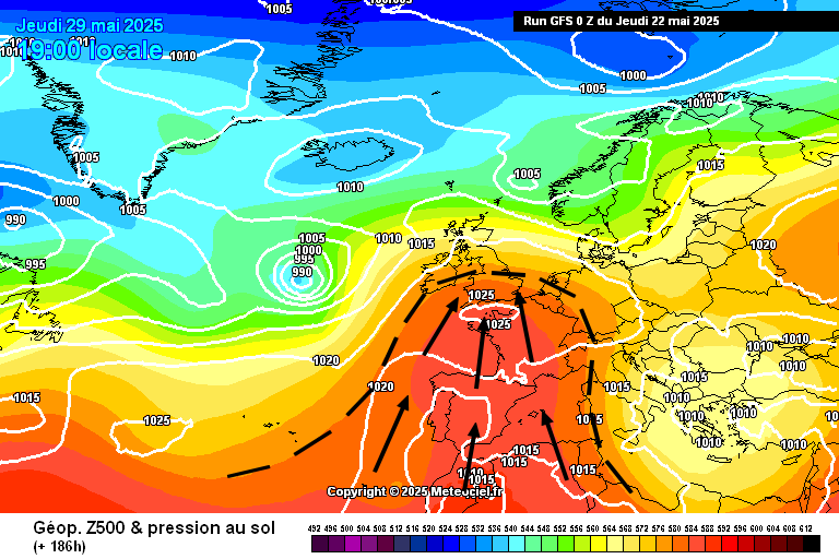 C'est le début d'un profond changement de temps car les hautes pressions vont peu à peu gagner l'Ouest et le Sud de la France. La semaine prochaine, le contexte météorologique va dans le sens d'un scénario "classique" avec de petites dépressions circulant loin au nord en direction de l'Angleterre et du Nord France. Sur les deux tiers Sud du pays, nous aurons un flux d'Ouest à coubure anticyclonique. Cela va favoriser du "foehn" sur notre région avec une hausse très nette des températures à la bascule mai/juin.