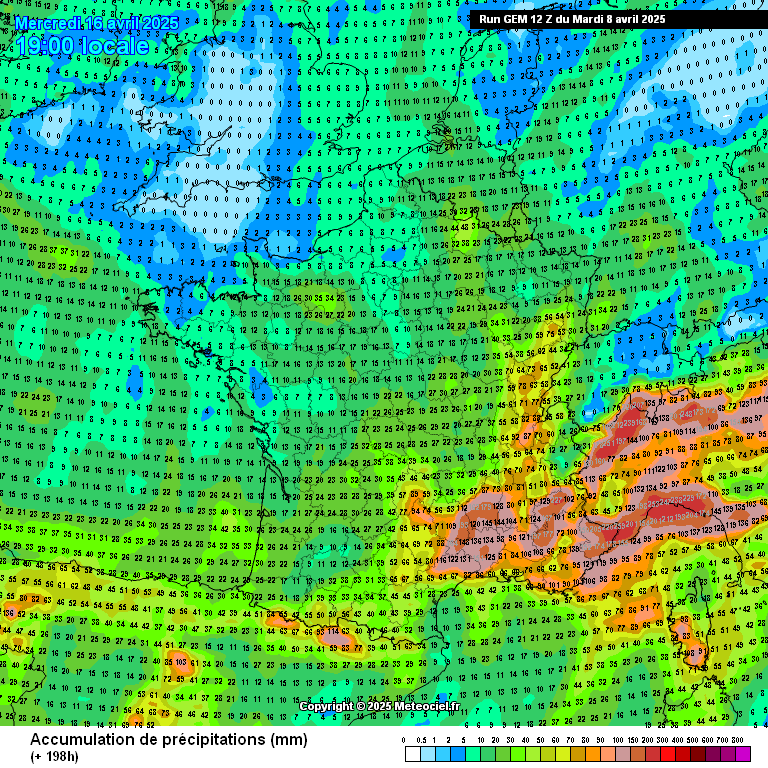 Entre mardi et mercredi, il est probable que de fortes pluies se déclenchent entre le Languedoc et les Cévennes (là encore, pas de façon continue pendant 48h, mais avec des salves bien distinctes). Le timing reste à affiner. Sur l'Ouest du Languedoc (Biterrois/Minervois/Aude) et le Roussillon, les passages pluvieux sont plus faibles/modérés mais néanmoins généralisés. Il faudra ensuite voir vers où se propage la dépression (et où elle se résorbe).
