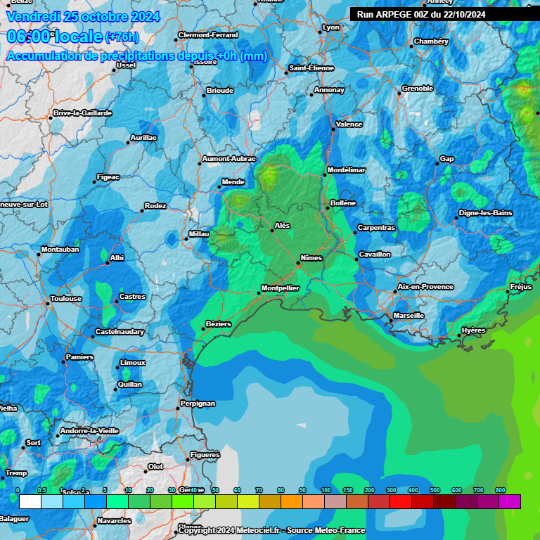 Globalement, à l'échelle des deux épisodes à venir, les zones les + susceptibles d'être touchées restent le triangle Gard/Cévennes/Ardèche et la Côte d'Azur. Cela correspond malheureusement aux zones les plus arrosées de l'automne.