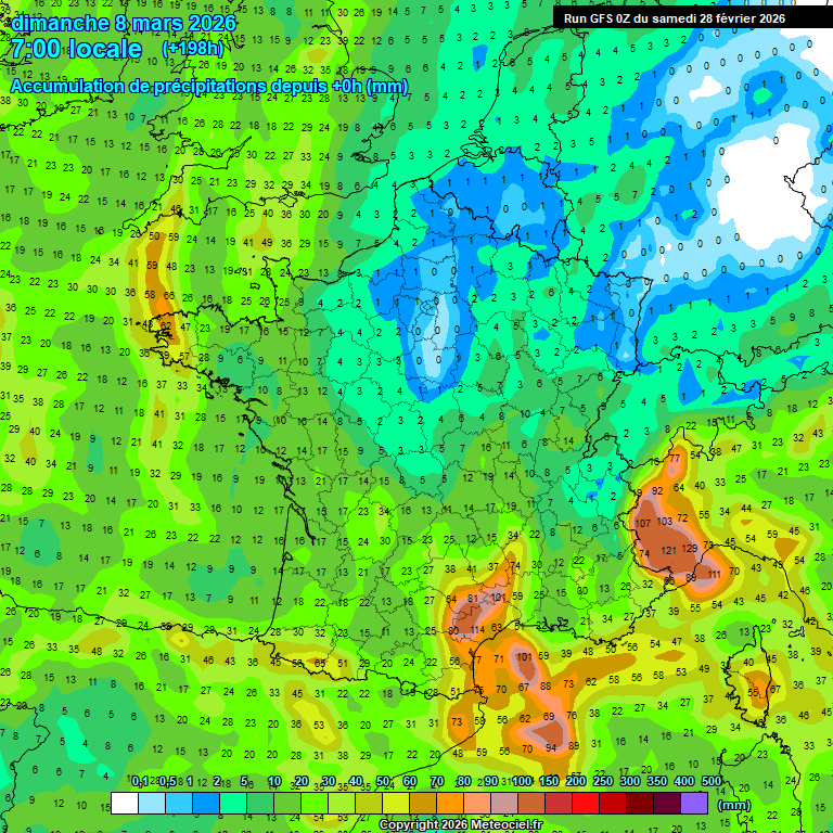 La situation est à surveiller entre jeudi et samedi notamment avec la probable arrivée d'une dépression plus active par l'Ouest. Elle pourrait engendrer une dégradation plus étendue et plus musclée avec des précipitations actives sur notre région. Certains modèles voient des cumuls de 30 à 50 mm sur les plaines et localement 100 mm près des reliefs en deux ou trois jours. Il est pour le moment difficile de savoir s'il s'agit d'une dégradation transitoire ou d'une nouvelle récurrence humide. Ce sera à affiner au cours de nos prochaines actualisations.