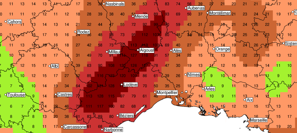 Entre lundi et mercredi, notre région située à mi-chemin entre une anomalie dépressionnaire plutôt située à l'Ouest, vers le Portugal, et l'anticyclone quant à lui circulant à l'Est de l'Italie jusqu'à la Roumanie. C'est un flux de secteur sud qui prédomine, mais sans grand dynamisme. On a donc un contexte météorologique propice aux entrées maritimes, notamment durant les matinées mais aussi les soirées/nuits. Quelques bruines et/ou petites averses vont s'en échapper par moments, plutôt près des Cévennes, mais certainement aussi sur les plaines du Roussillon, de l'Est Audois et de l'Hérault. Ces précipitations sont globalement insignifiantes.