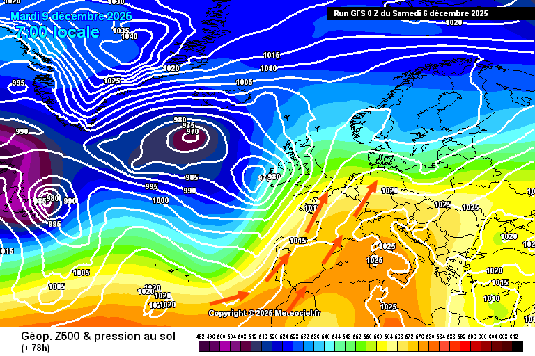 En ce premier week-end de décembre, le contexte météorologique est en évolution. Un anticyclone se reconstitue actuellement entre les Açores, l'Afrique du nord, la Péninsule Ibérique et le sud de la France. Les dépressions sont repoussées loin vers le nord, sur l'axe Angleterre - Scandinavie. Une circulation zonale s'installe : les vents directeurs (dominants) s'orientent à l'Ouest, oscillant parfois au Sud-Ouest. C'est un marqueur de puissant redoux sur l'Europe de l'Ouest, dont la France. Un redoux qui n'aura aucune difficulté à atteindre les hautes altitudes ces prochains jours.